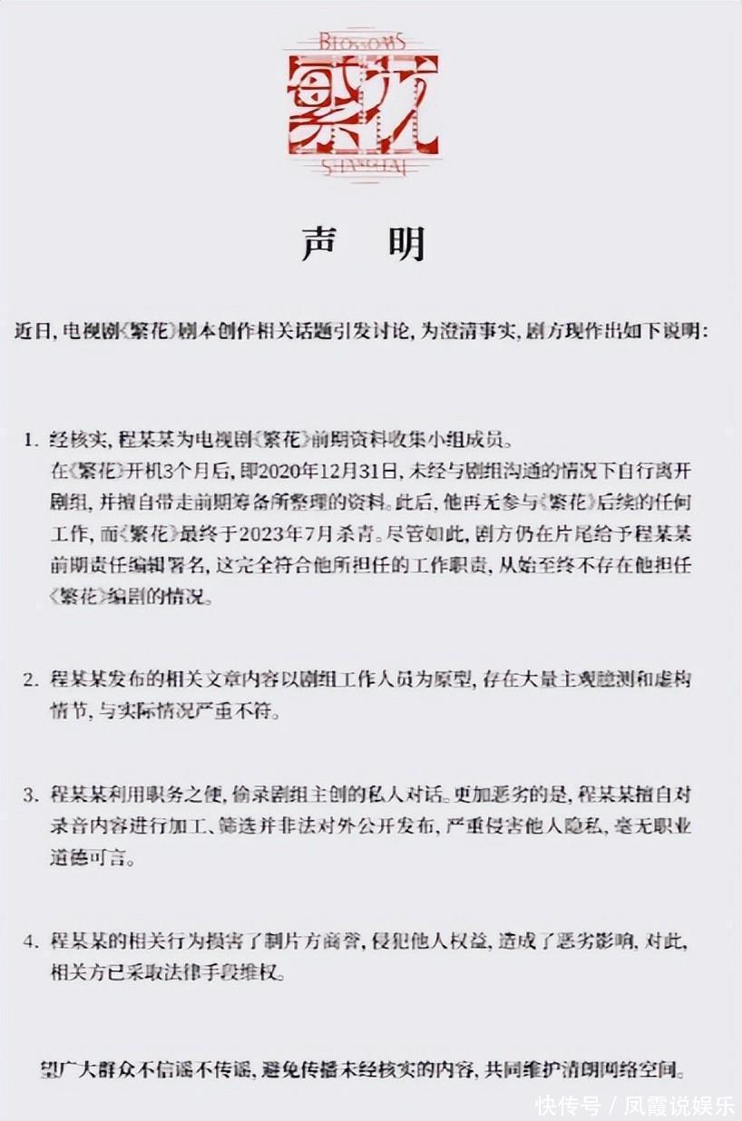 出了这录音风波之后,《繁花》剧组麻溜地发了个声明,直接就说程骏年“偷偷录音,把录音剪来剪去搞加工,就是存心报复”。